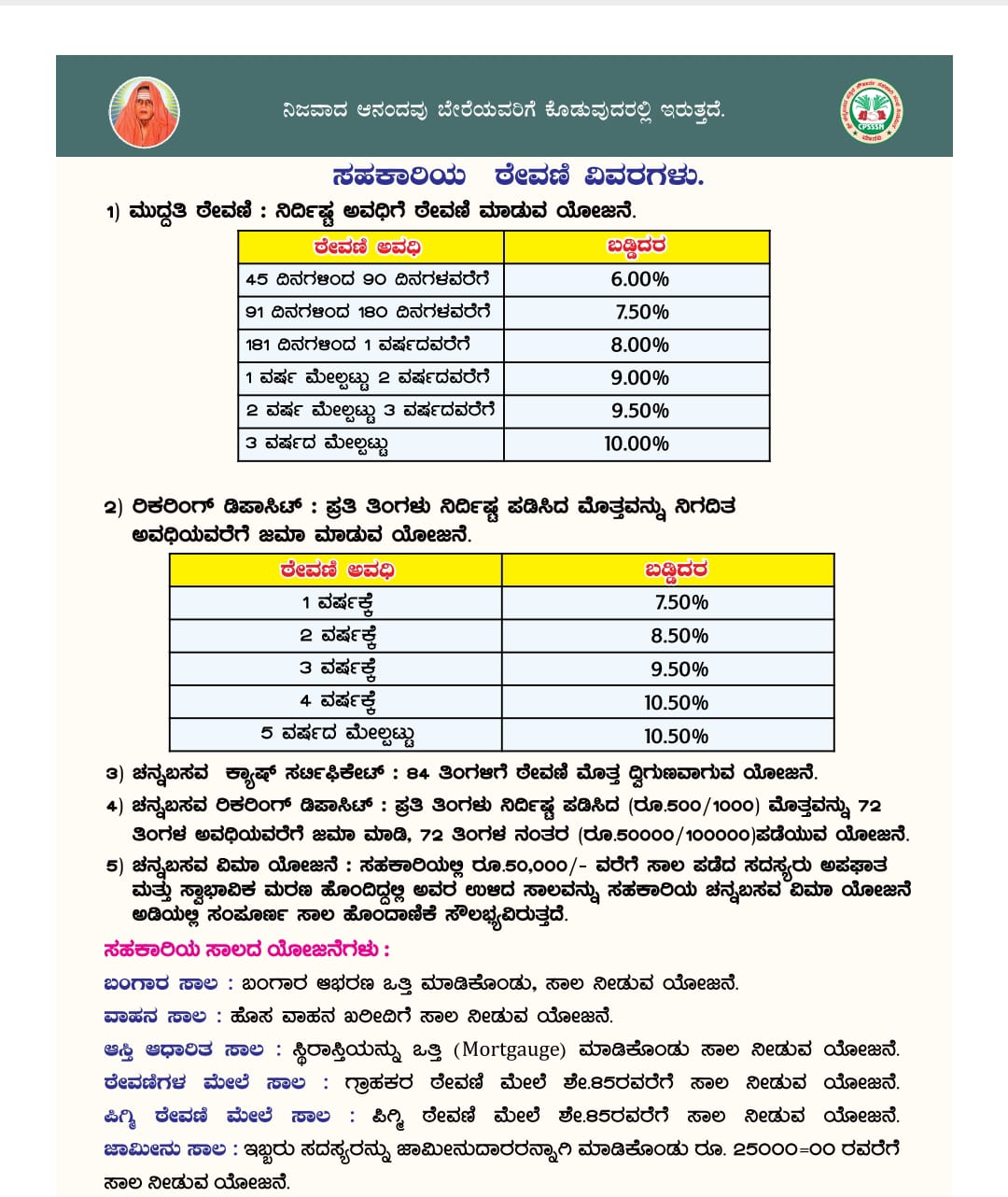 | Sl No | Type of Loans | ROI | Below 4 Lakhs | Above 4 Lakhs |
